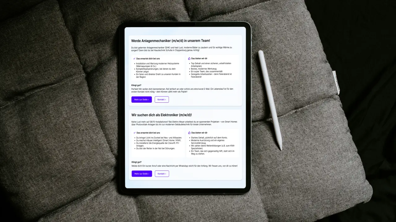 In einer Zeit, in der gute Leute sich ihren Arbeitgeber aussuchen können, ist ein starker Online-Auftritt kein „nice to have“ mehr, sondern eine absolute Notwendigkeit. Es ist die beste Investition, um im Kampf um die Talente in unserer Region die Nase vorn zu haben.