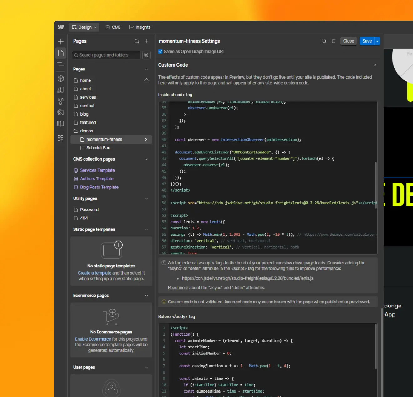 Webflow ist eine moderne Plattform zur Erstellung professioneller Websites, die Designfreiheit und Benutzerfreundlichkeit vereint. Im Gegensatz zu starren Baukastensystemen ermöglicht Webflow ein komplett individuelles Design, das perfekt zu Ihrem Unternehmen passt. Zudem sind mit Webflow erstellte Seiten für ihre schnellen Ladezeiten und gute Suchmaschinenoptimierung (SEO) bekannt.